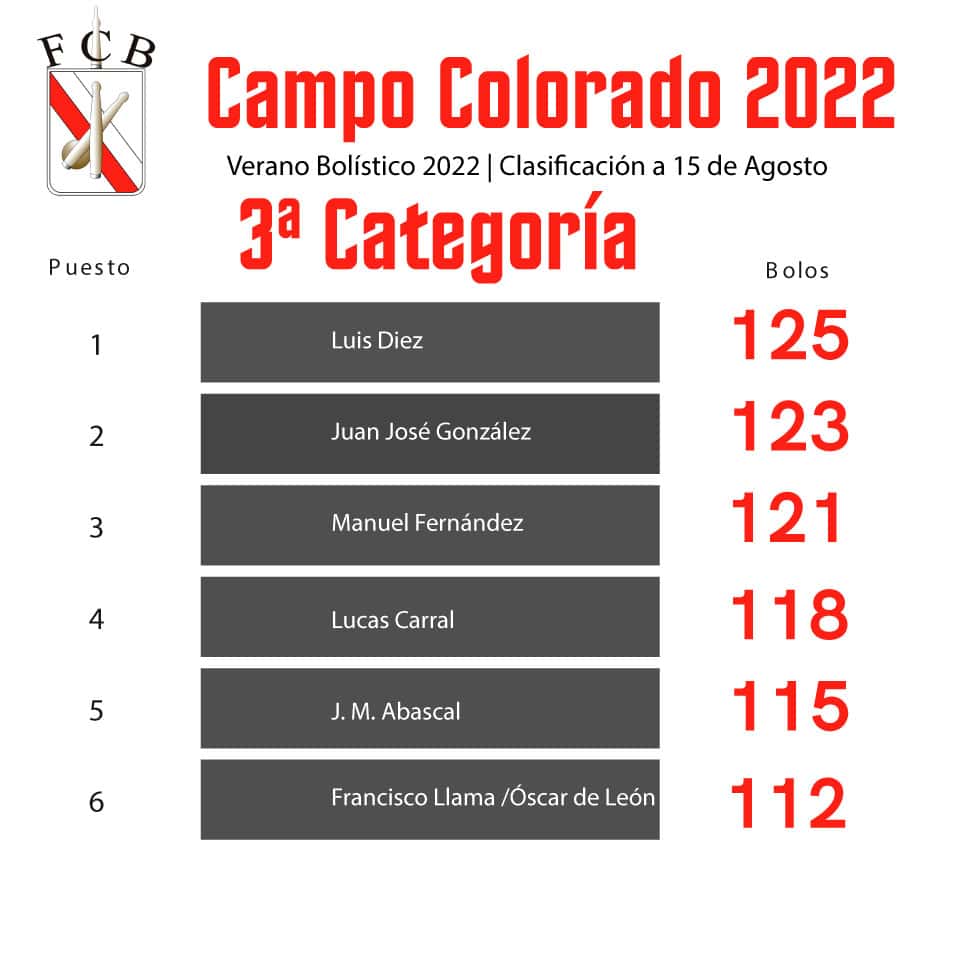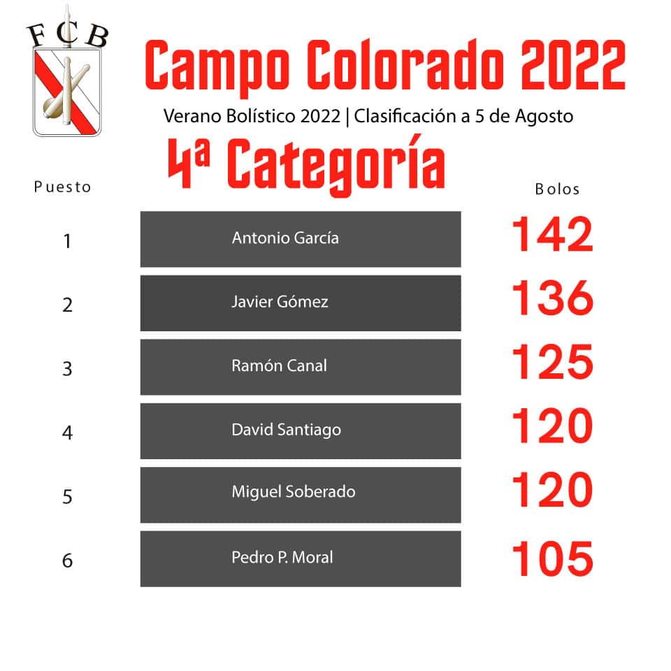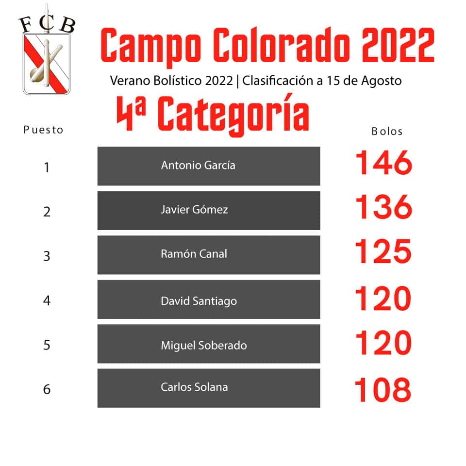 Clasificaciones de los concursos de Campo Colorado a 15 de Agosto de 2022
