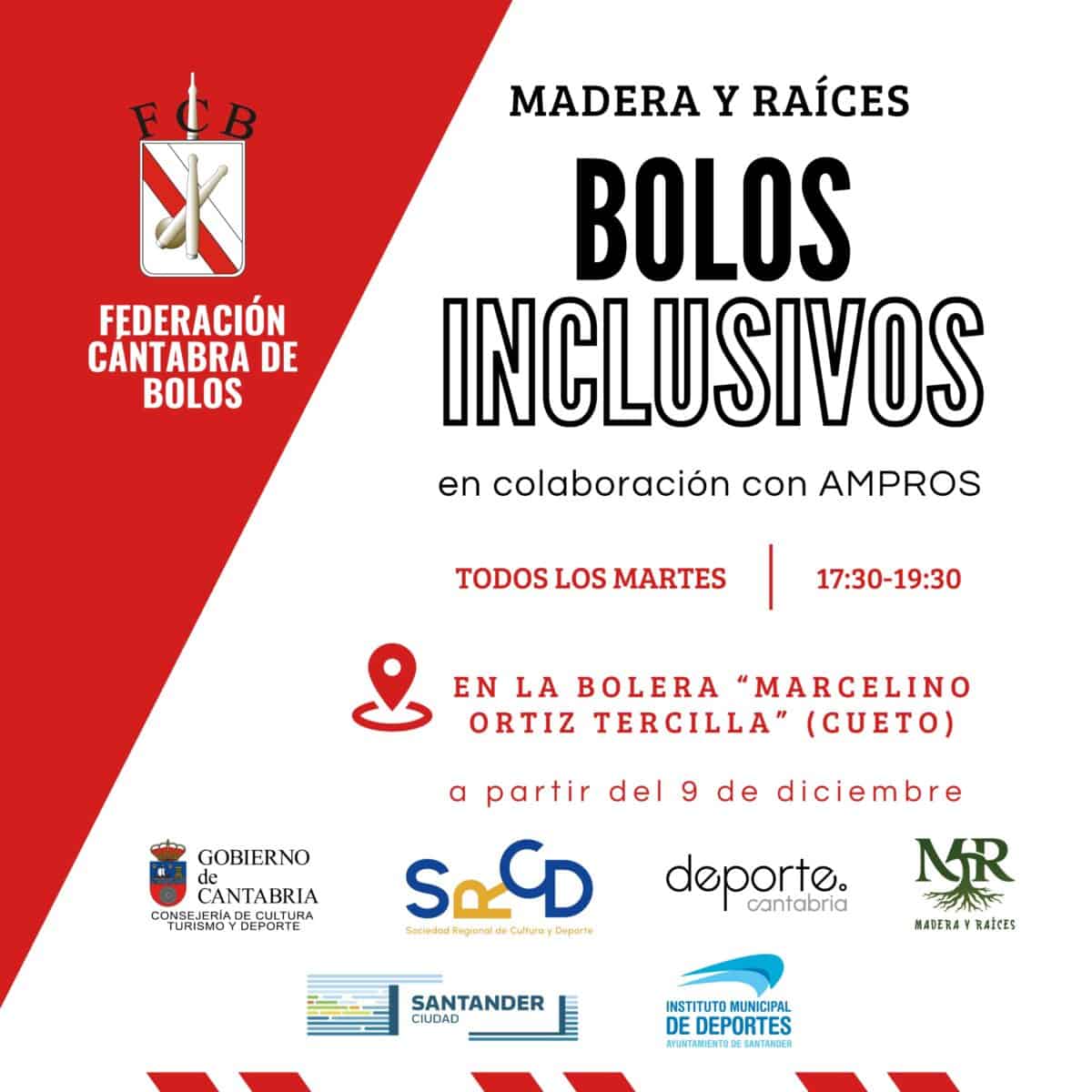 Desde el martes 9 de diciembre y hasta finales de mayo, la Federación Cántabra de Bolos, en colaboración con AMPROS, organiza una actividad muy especial: Bolos Inclusivos, dentro del proyecto Madera y Raíces.